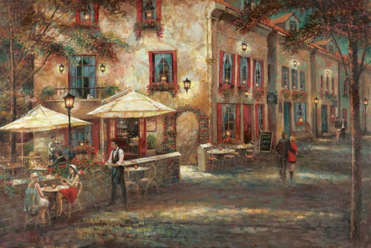 Cafe Afternoon White Modern Wood Framed Art Print with Double Matting by Nan