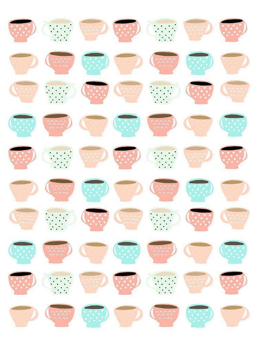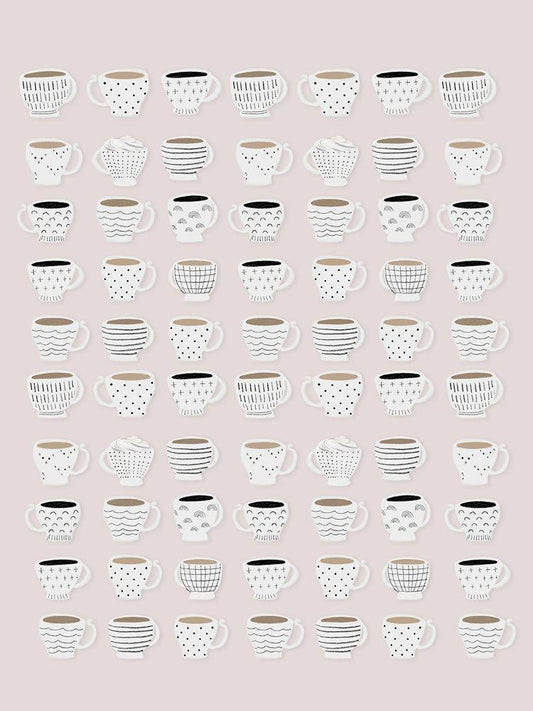 Coffee Mug Pattern White Modern Wood Framed Art Print with Double Matting by Straatsma, Leah