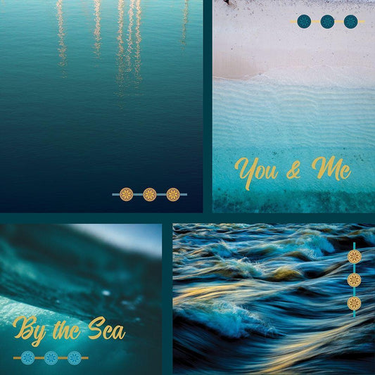 By the Sea Saffron Teal 4 White Modern Wood Framed Art Print with Double Matting by Hogan, Melody