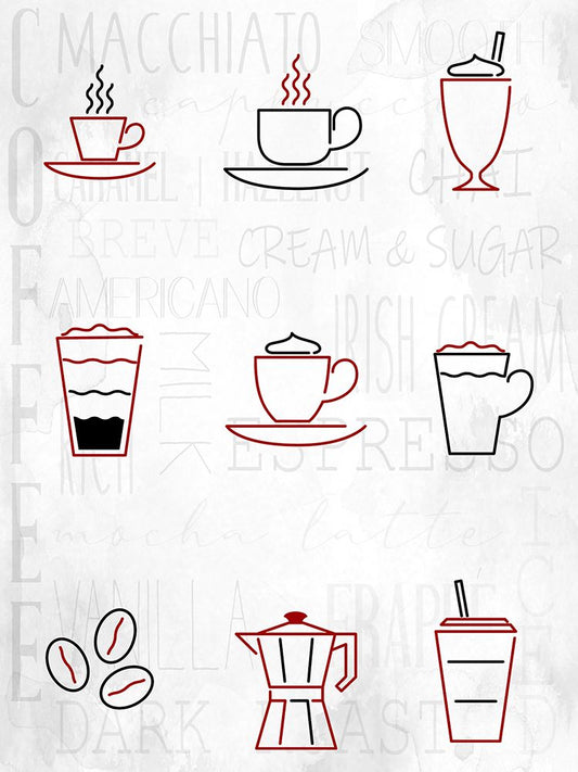 Coffee Chart White Modern Wood Framed Art Print with Double Matting by Allen, Kimberly