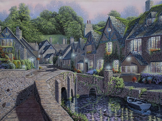 Lamp Light Village White Modern Wood Framed Art Print with Double Matting by Harvill, Marc