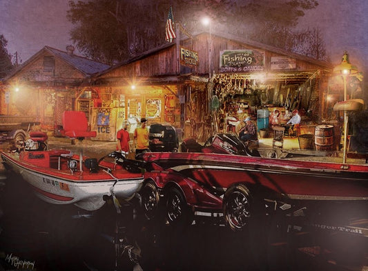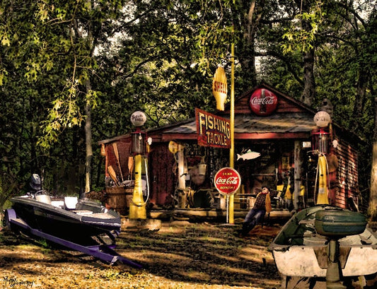 The Fishing Depot White Modern Wood Framed Art Print with Double Matting by Murray Henderson Fine Art