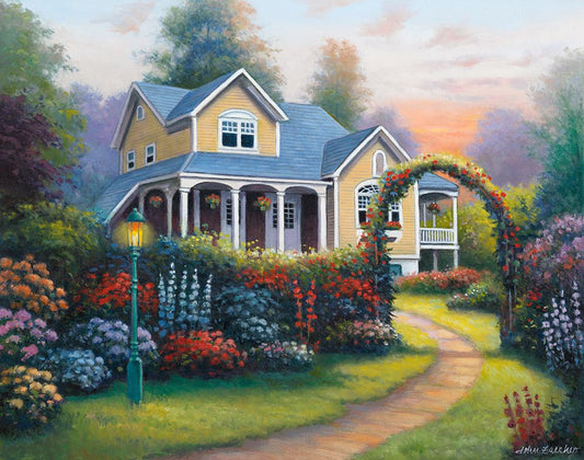 Stone Walkway White Modern Wood Framed Art Print with Double Matting by Zaccheo, John