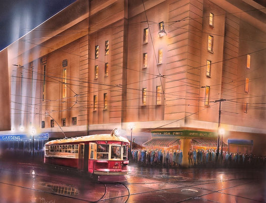 Street Scene White Modern Wood Framed Art Print with Double Matting by Zaccheo, John