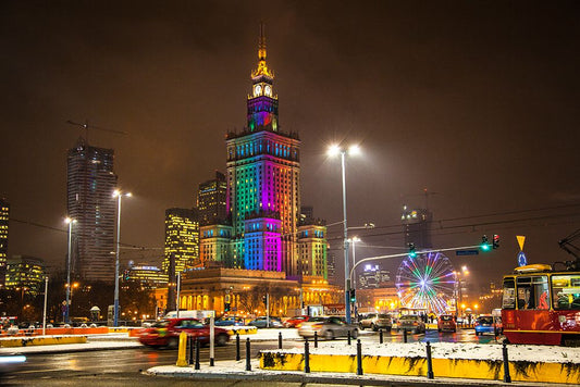 Warsaw by Night White Modern Wood Framed Art Print with Double Matting by Heine, Ben