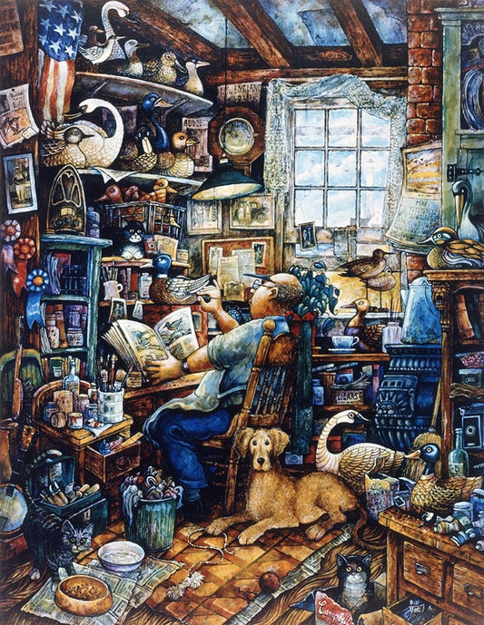 Aunt Teaks Antique Store White Modern Wood Framed Art Print with Double Matting by Bigelow Illustrations- Exclusive