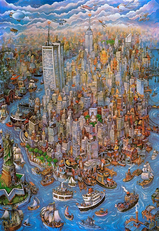 Manhattan White Modern Wood Framed Art Print with Double Matting by Bell, Bill