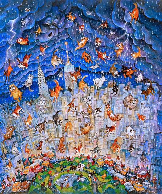 Snow Cats White Modern Wood Framed Art Print with Double Matting by Bell, Bill