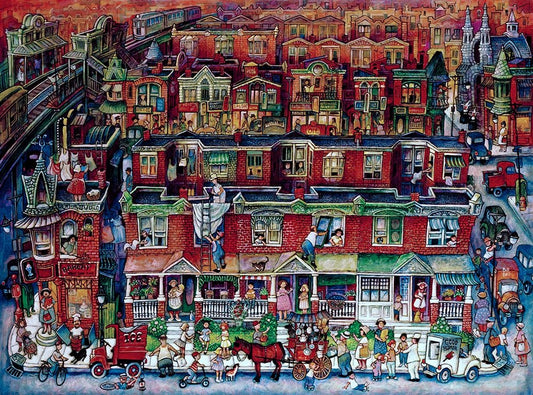 Neighborhood White Modern Wood Framed Art Print with Double Matting by Bell, Bill