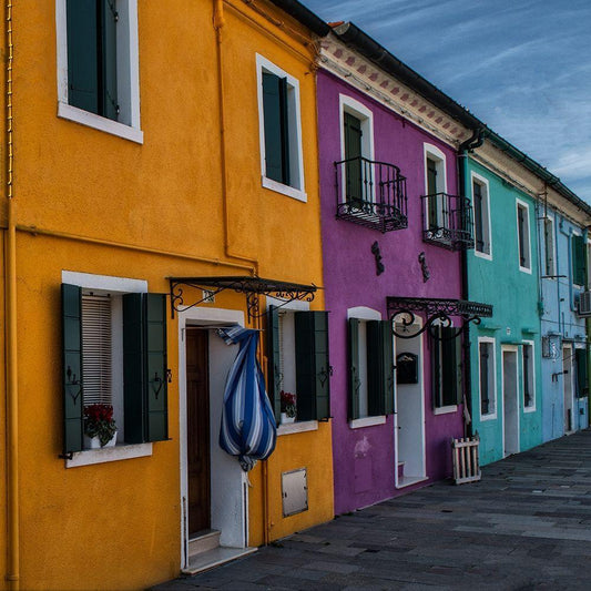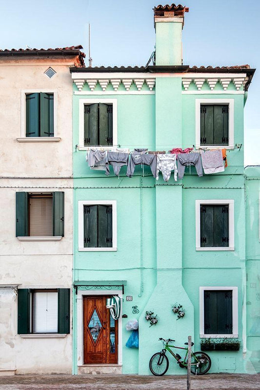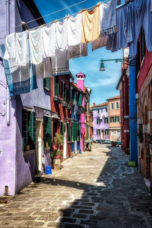 Burano Wash Day White Modern Wood Framed Art Print with Double Matting by Head, Danny