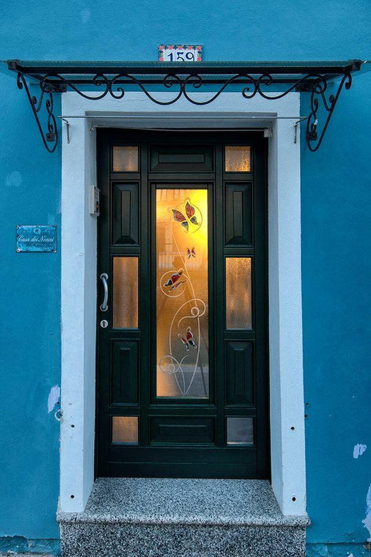 Burano Door I White Modern Wood Framed Art Print with Double Matting by Head, Danny