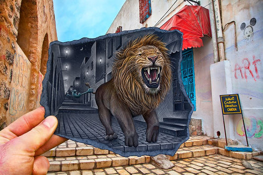 Pencil Vs Camera 63 - Roaring Lion White Modern Wood Framed Art Print with Double Matting by Heine, Ben