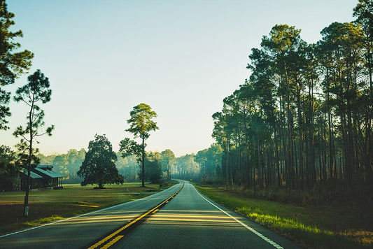 Morning Road White Modern Wood Framed Art Print with Double Matting by Malone, Will