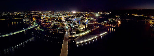 Downtown Night White Modern Wood Framed Art Print with Double Matting by Malone, Will