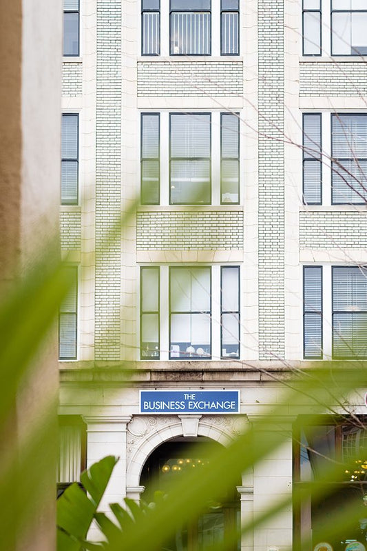 Business Exchage 5 White Modern Wood Framed Art Print with Double Matting by Malone, Will