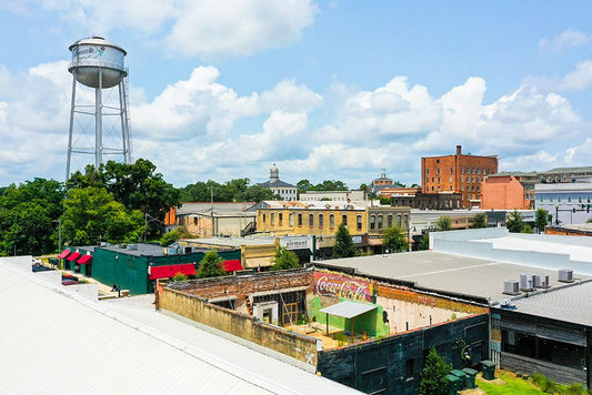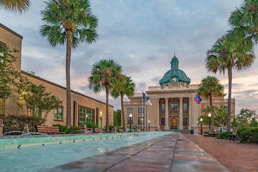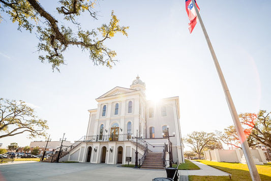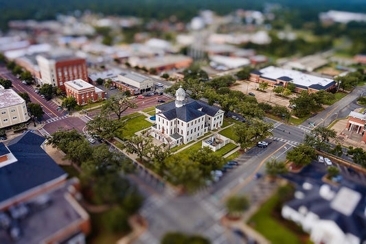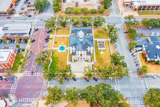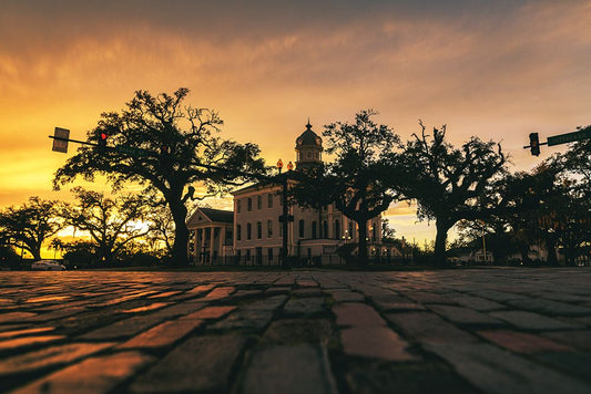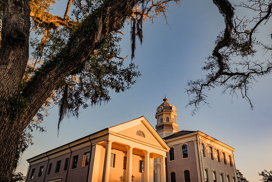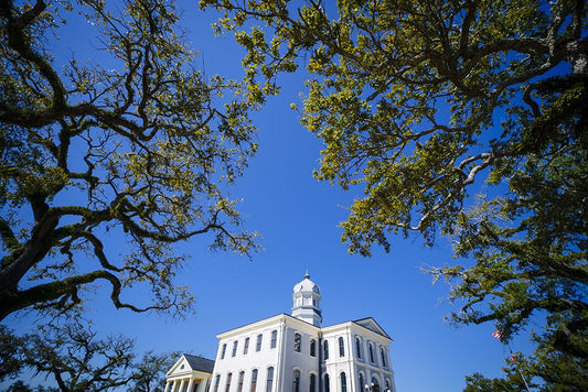 Courthouse Morning White Modern Wood Framed Art Print with Double Matting by Malone, Will