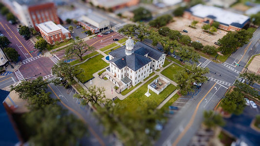 Courthouse 8 White Modern Wood Framed Art Print with Double Matting by Malone, Will
