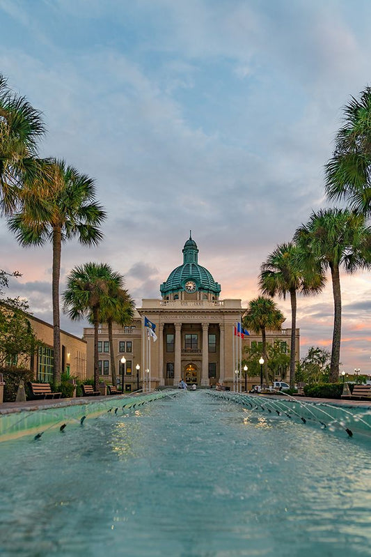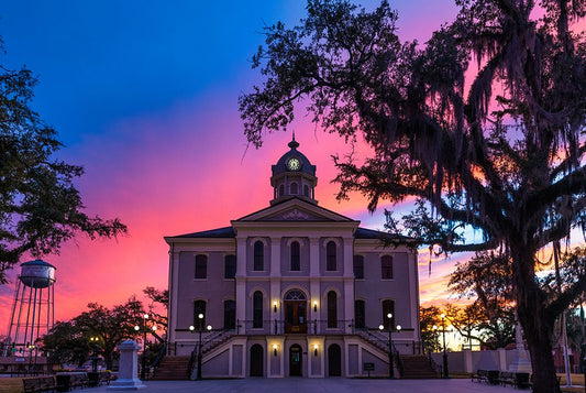 Courthouse Sunset 2 White Modern Wood Framed Art Print with Double Matting by Malone, Will