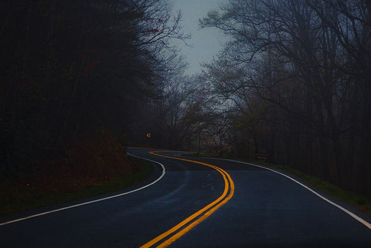 Winding Road White Modern Wood Framed Art Print with Double Matting by Malone, Will