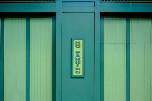 No Parking White Modern Wood Framed Art Print with Double Matting by Malone, Will