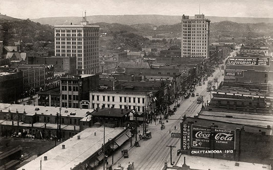Downtown Chattanooga 1913 White Modern Wood Framed Art Print with Double Matting by Lee, Rachel