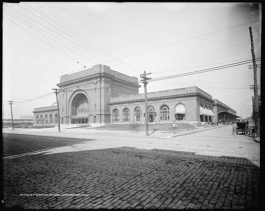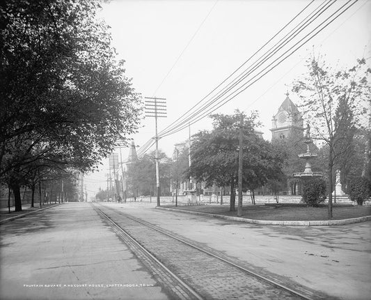 Market Square Chattanooga 1907 White Modern Wood Framed Art Print with Double Matting by Lee, Rachel