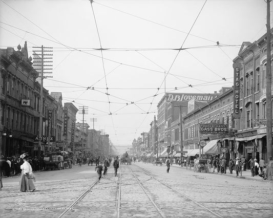 Market Street 1907 White Modern Wood Framed Art Print with Double Matting by Lee, Rachel