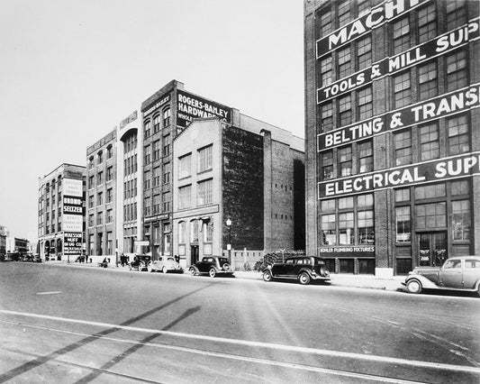 Market Street Chattanooga 1933 White Modern Wood Framed Art Print with Double Matting by Lee, Rachel