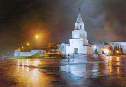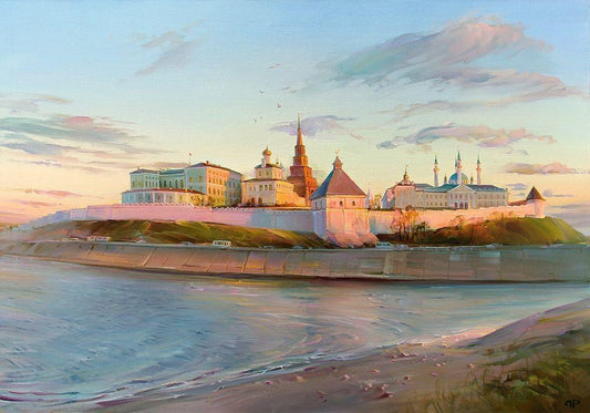 Evening Kazan White Modern Wood Framed Art Print with Double Matting by Romanov, Roman