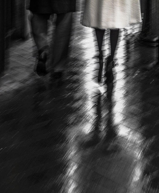 Walking In The Rain White Modern Wood Framed Art Print with Double Matting by Claes, Gilbert