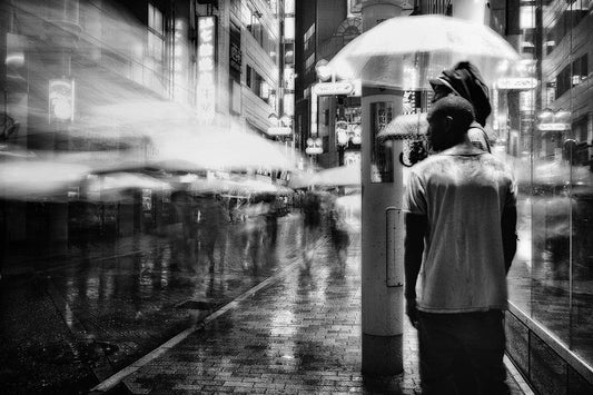 A Night In The Rain White Modern Wood Framed Art Print with Double Matting by Suzuki, Tatsuo