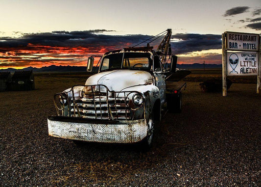 UFO Car White Modern Wood Framed Art Print with Double Matting by Lichtenwalter, Tom