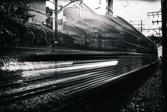Train White Modern Wood Framed Art Print with Double Matting by Suzuki, Tatsuo
