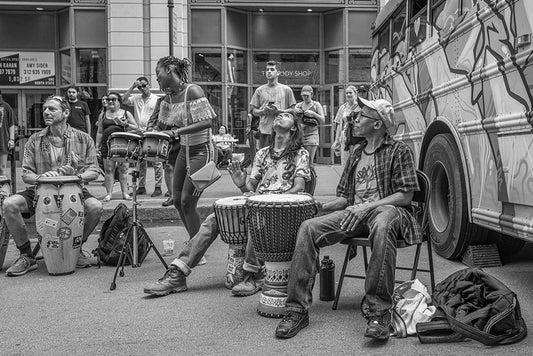 City Drum Line White Modern Wood Framed Art Print with Double Matting by Fischer Hartman, Wendy