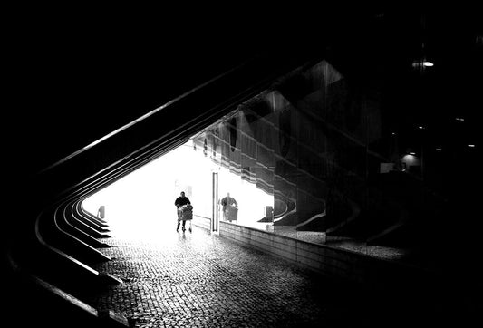 Heavy walking White Modern Wood Framed Art Print with Double Matting by Uhrin, Milan