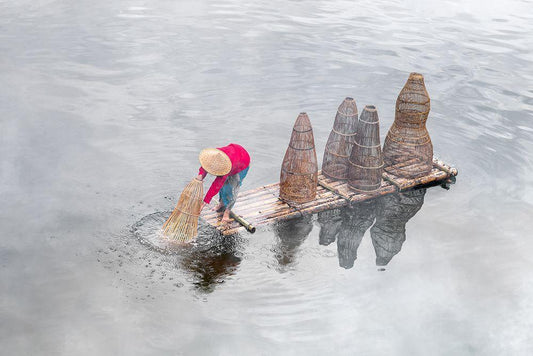 Catching The Fish White Modern Wood Framed Art Print with Double Matting by Herliyanto, Gatot