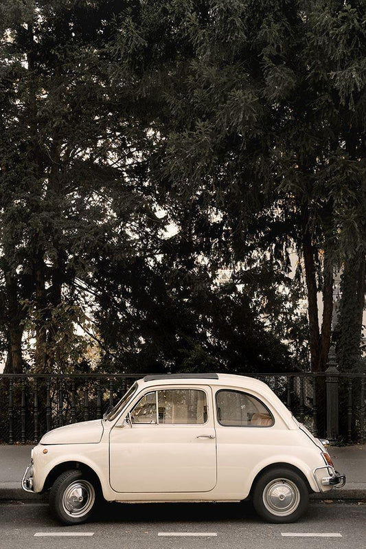 Little Car In Paris White Modern Wood Framed Art Print with Double Matting by 1x Studio III