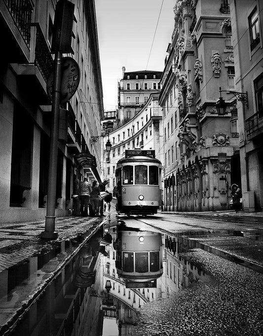 Rainy Days In Lisbon White Modern Wood Framed Art Print with Double Matting by Ezequiel59