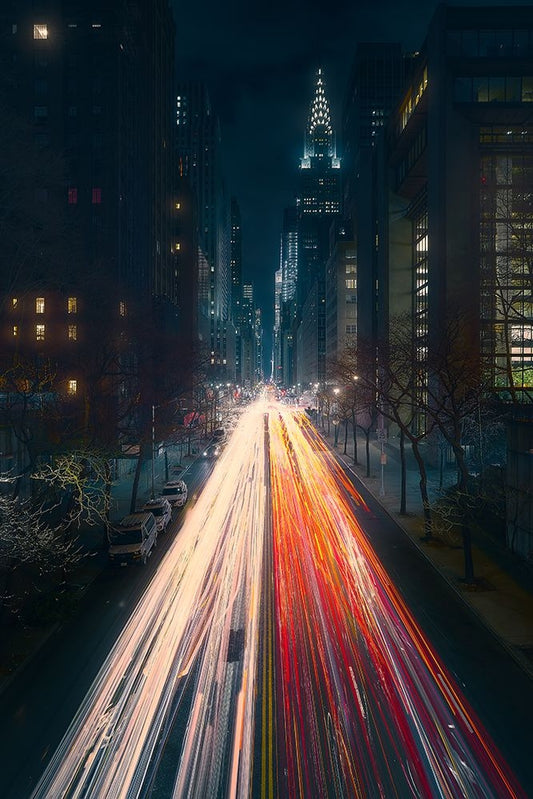 Tudor City Bridge White Modern Wood Framed Art Print with Double Matting by De La, Javier