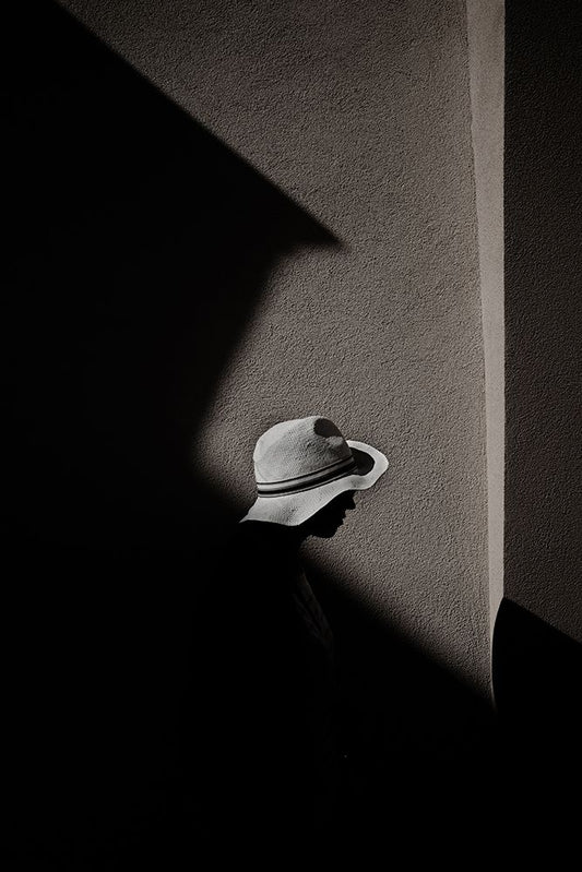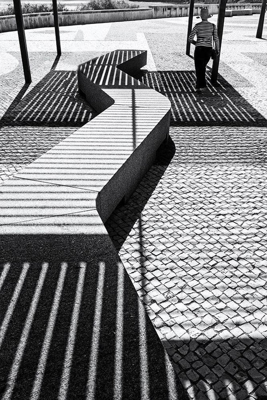 Walking Light And Shadows White Modern Wood Framed Art Print with Double Matting by Ezequiel59