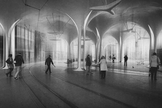 Integration White Modern Wood Framed Art Print with Double Matting by Ratzer, Klaus