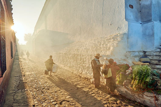 Morning In City Chichicastenango, Guatemala White Modern Wood Framed Art Print with Double Matting by Froyda, Martin