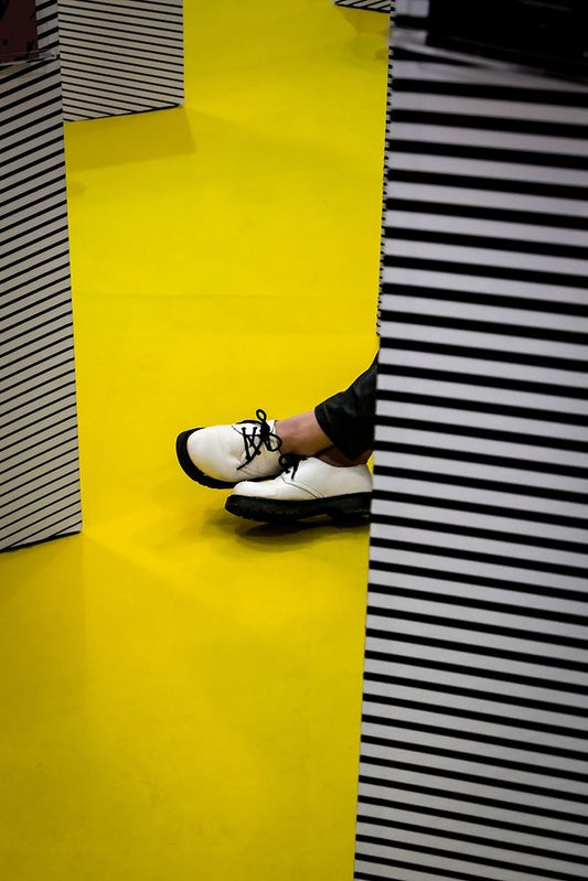 Dangling Shoes White Modern Wood Framed Art Print with Double Matting by Achtergarde, Burkhard