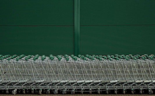 Shopping Trolleys White Modern Wood Framed Art Print with Double Matting by Schuster, Inge