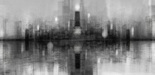 Chicago Skyline White Modern Wood Framed Art Print with Double Matting by Chiriaco, Carmine