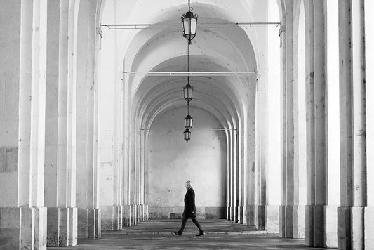 New York Walker In Blizzard White Modern Wood Framed Art Print with Double Matting by Froyda, Martin