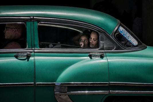 Classic Old Car In Havana-Cuba White Modern Wood Framed Art Print with Double Matting by Yosifov, Svetlin
