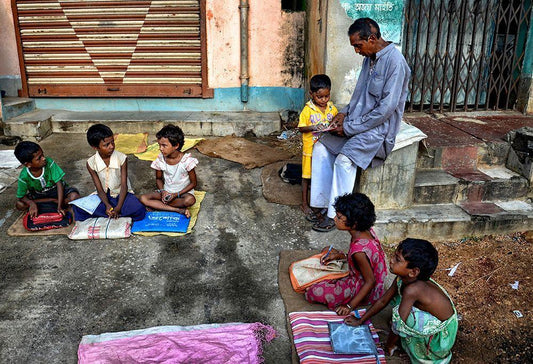 Street Education White Modern Wood Framed Art Print with Double Matting by Das, Avishek