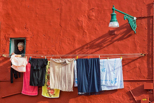 Washing Day White Modern Wood Framed Art Print with Double Matting by Hullot Scalvenzi, Benjamine