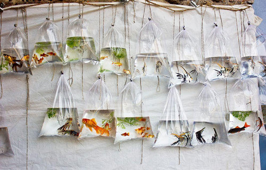 The Wall Of Fish White Modern Wood Framed Art Print with Double Matting by Mondal, Monojit